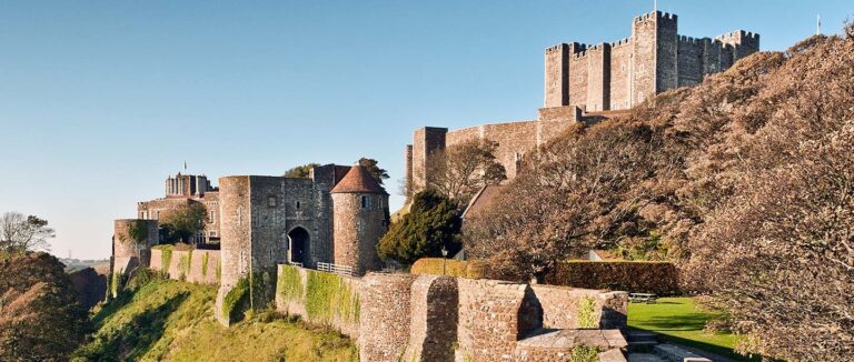 Dover Castle in Kent is one of England’s most impressive and historically significant fortresses, standing proudly above the White Cliffs and overlooking the English Channel. With over 900 years of history, the castle has played a vital role in defending the country and offers visitors the chance to explore a medieval royal palace, the mighty Great Tower and extensive wartime tunnels. Interactive exhibits, historic rooms and dramatic underground passages bring the castle’s rich past to life, including the Secret Wartime Tunnels used during the Second World War and Operation Dynamo.